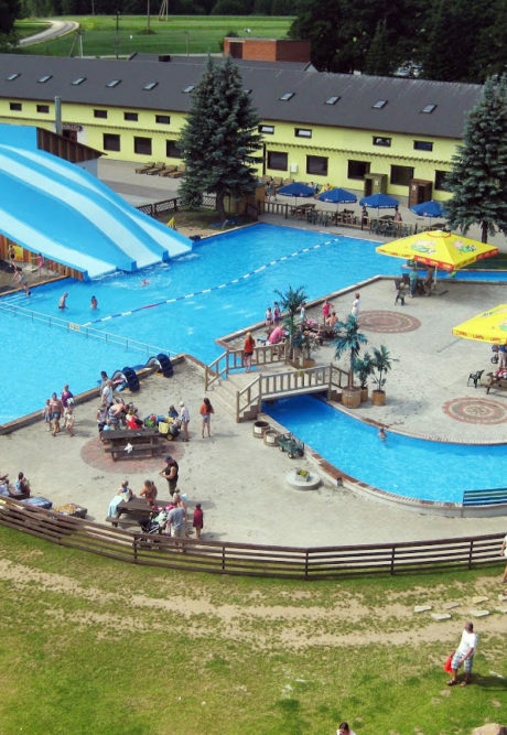 Самый крутой в Эстонии аквапарк под открытым небом ждет вас! Водные горки на трех разных уровнях и быстрая 60-метровая водная труба (это для использования с 4-летнего возраста). Кроме того, бассейн с речным течением для купания, а также отдельные бассейны для детей и малышей. В прохладную погоду согреют бани-бочки!